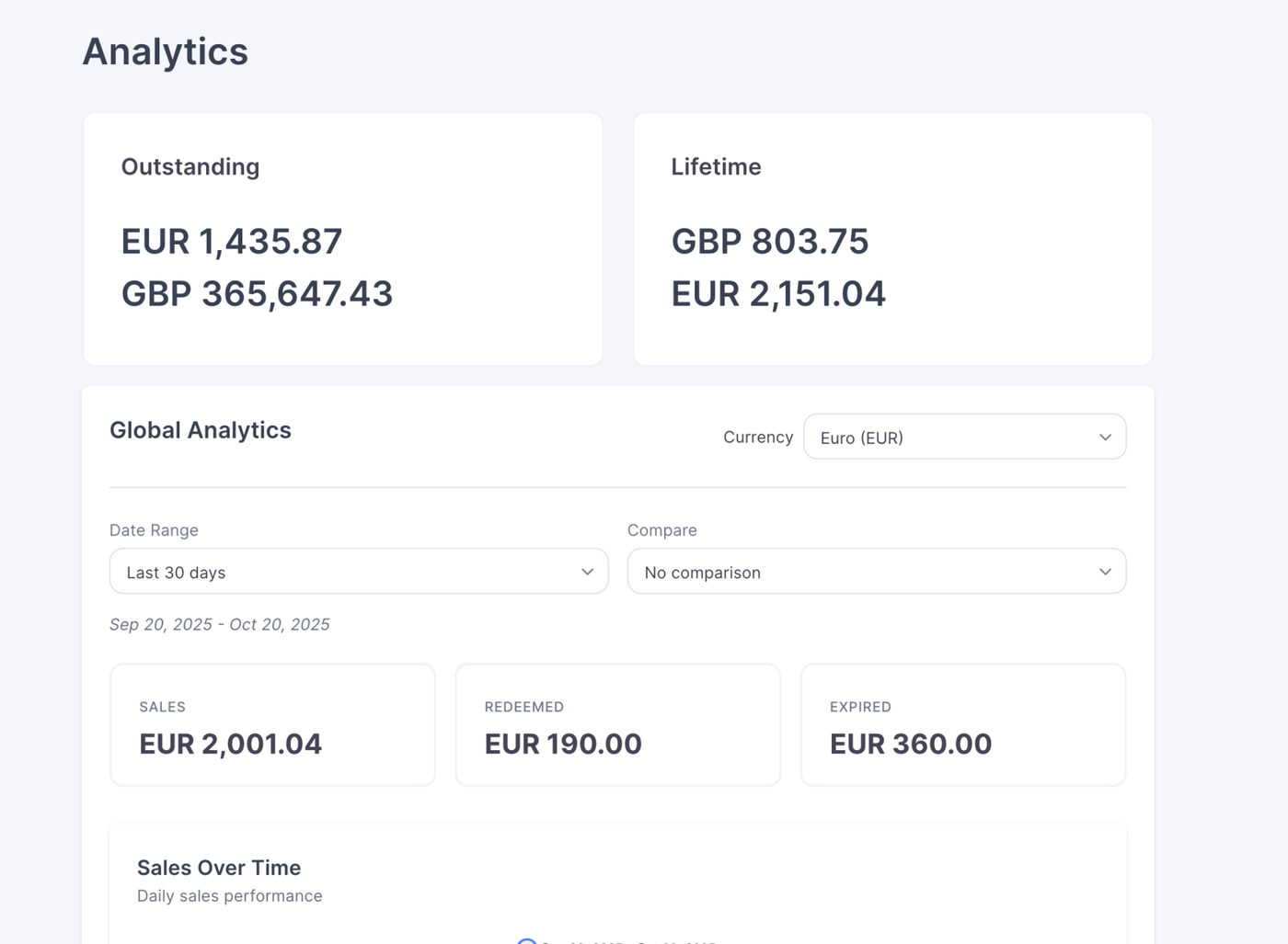 • Total Sales, Redemptions & Expiries - Analyse overall performance within any period.